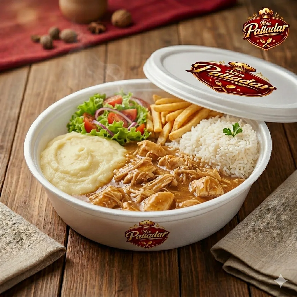 Meu Palladar pede um delicioso frango ao molho, preparado com pedaços suculentos e bem temperados, envolvidos em um molho cremoso e cheio de sabor, acompanhado de um purê de batata macio que derrete na boca. Uma refeição caseira perfeita para quem busca sabor e conforto em cada garfada.
